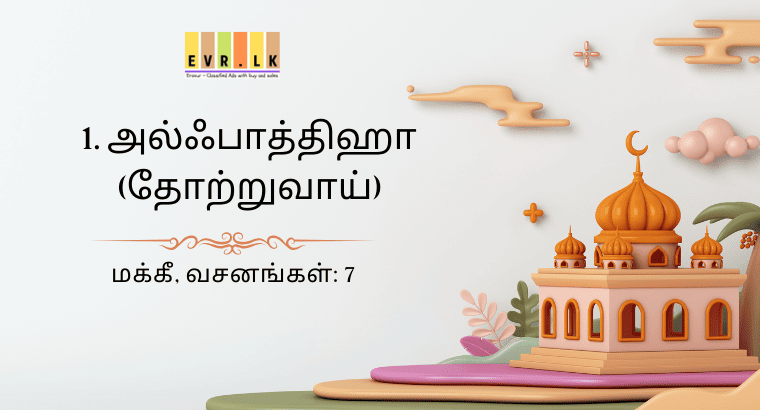 மக்கீ, வசனங்கள்: 7 1:1 بِسْمِ اللّٰهِ الرَّحْمٰنِ الرَّحِيْمِ அளவற்ற அருளாளனும், நிகரற்ற அன்புடையோனுமாகிய அல்லாஹ்வின் திருப்பெயரால்(துவங்குகிறேன்) 1:2 اَلْحَمْدُ لِلّٰهِ رَبِّ الْعٰلَمِيْنَۙ அனைத்து…