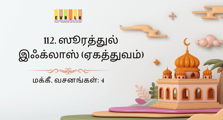 மக்கீ, வசனங்கள்: 4 بِسْمِ اللهِ الرَّحْمٰنِ الرَّحِيْمِ அளவற்ற அருளாளனும், நிகரற்ற அன்புடையோனுமாகிய அல்லாஹ்வின் திருப்பெயரால்(துவங்குகிறேன்) 112:1 قُلْ هُوَ اللّٰهُ اَحَدٌ ۟ۚ (நபியே?!)…